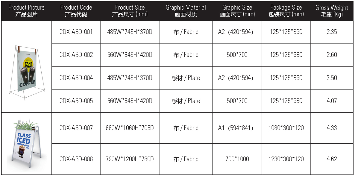 勤德士新款的A-BOARD海報架,采用極簡設計,簡約時尚,拆裝簡單,便于攜帶。